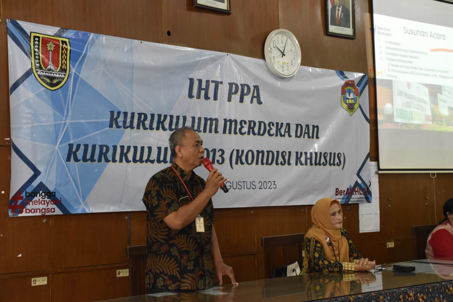 SMPN 6 Semarang memantapkan kompetensi guru tentang Kurikulum Merdeka dan Kurikulum 2013 melalui kegiatan In House Training PPA. Kegiatan tersebut dilaksanakan hari Jumat, 21 Agustus 2023 di ruang guru. Kegiatan IHT PPA ini diikuti oleh seluruh bapak dan ibu guru SMPN 6 Semarang dan mahasiswa PPG Prajabatan UPGRIS. Kegiatan IHT PPA tersebut dibuka oleh Bapak H. Suparno, S.Pd., M.Pd., selaku kepala SMPN 6 Semarang.